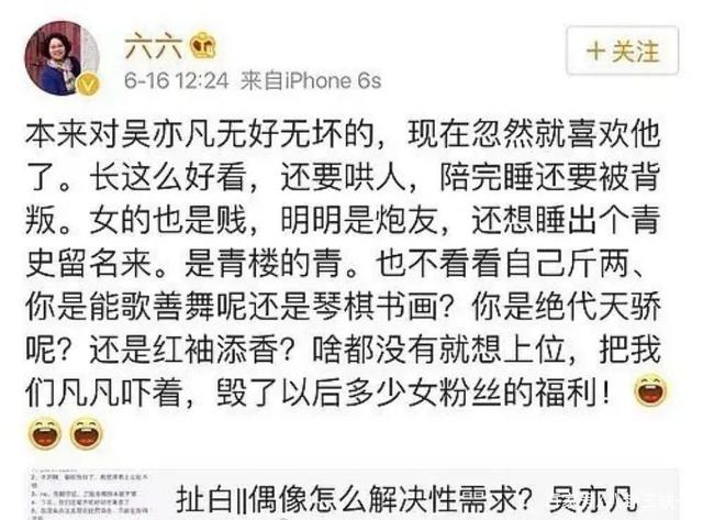 一个当年说“还有比明星睡粉更好的粉丝福利吗”,一个力挺吴亦凡,说“担任得了多大的荣耀,就经得起多大的诋毁,黑,永远压不了光明。”
