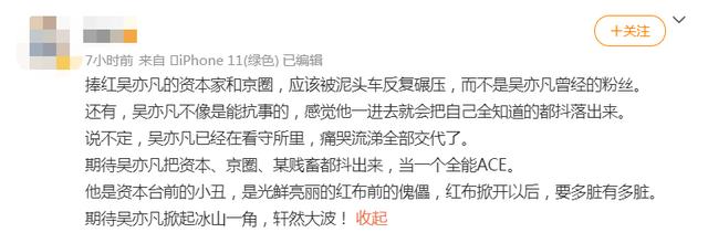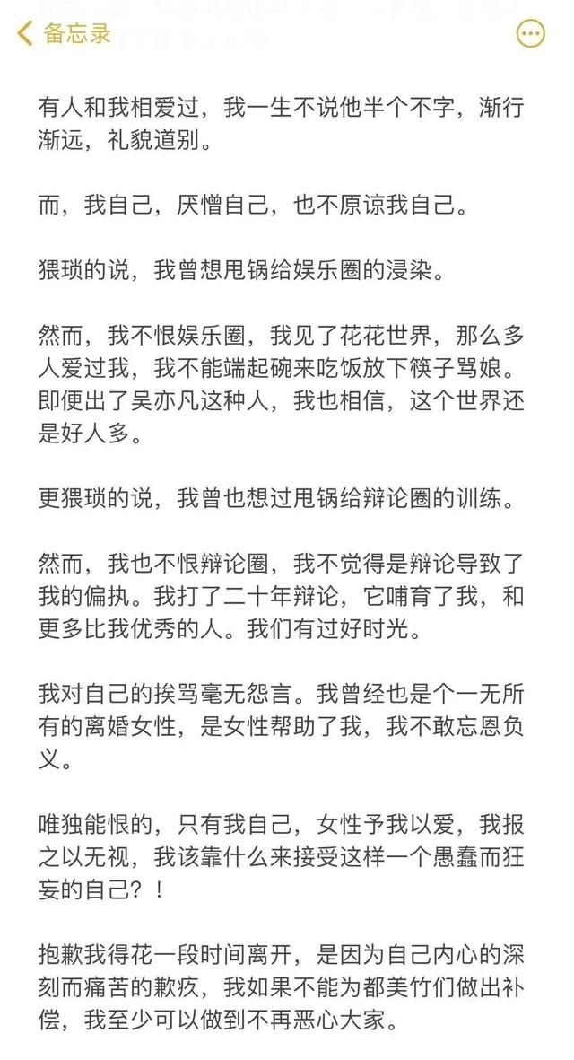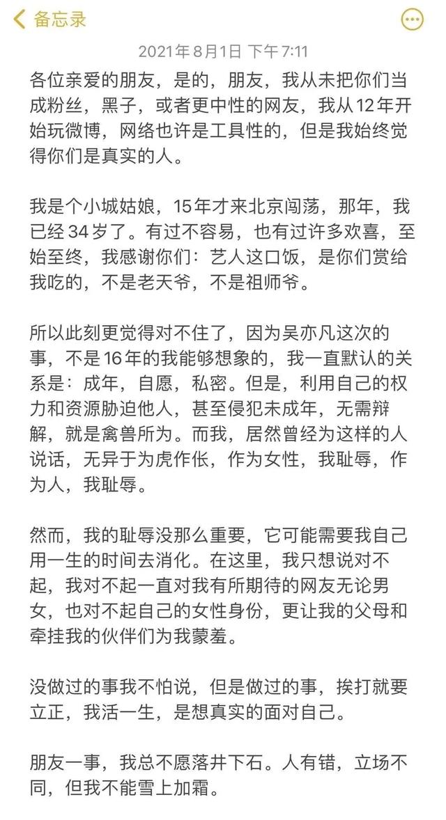 说实在的,确实是看出来挺有悔意了,不过相比为自己当年说的那些站吴亦凡的蠢话而后悔,更多的恐怕是怕自己饭碗不保而后悔吧?