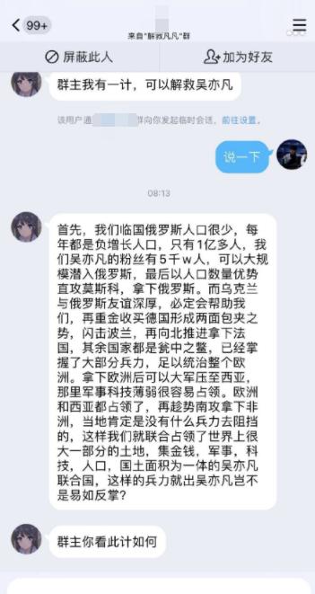 还有这种急中生智献出一计的,建议吴亦凡的5000万粉丝去攻占隔壁的俄罗斯,然后一路拿下欧洲,建立吴亦凡共和国,到时候救吴亦凡就易如反掌了…
