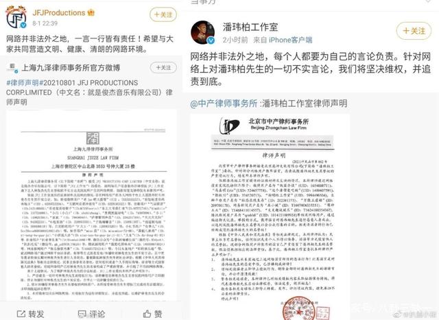 目前林俊杰和潘玮柏都陆续发了澄清声明和律师函,表示网络不是法外之地,他们要坚决维权。