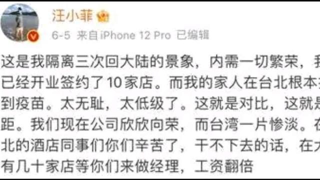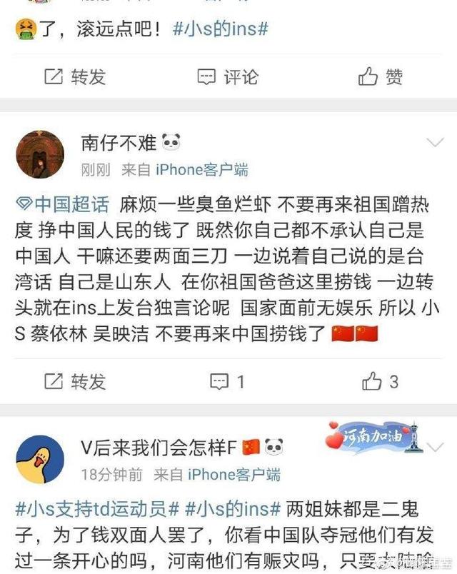 说实话,大小S,我从来没有好感,却也没有恶感,可最近对这一对超作的蛇精姐妹花,突然有了极大恶感。首先,前一阵子大S突然单方面宣布离婚,就因为她老公说了大白实话批了台湾的疫情防控不力(这里其实觉得汪难得爷们了一把,说的也是实情,就是言辞过激了),矫情的大蛇精开始作了。放话“离婚手续在办了,他的言行本人不予置评。”什么的,好拽。可恶是她居然让孩子在台湾上学,结果会怎样,从小在台湾受教育就会对中国大陆有种排外感,他们课本历史都是宣扬国民党正统。这样从小潜移默化的灌输教育多可怕。
