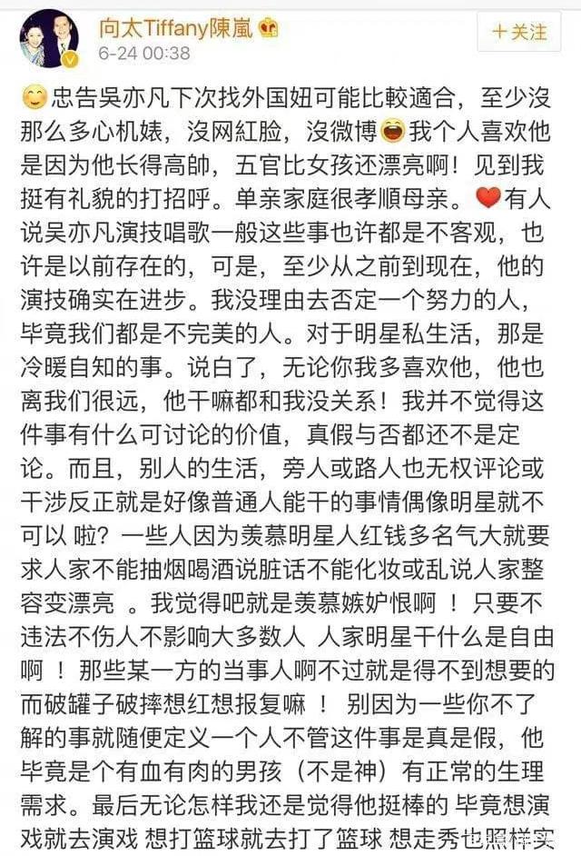 向太之前帮吴亦凡说过话,现在这篇也没了↓