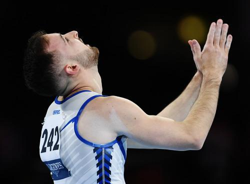 资料图:2019年10月12日,以色列选手多尔戈皮亚特在第49届世界体操锦标赛男子自由操决赛比赛间隙。