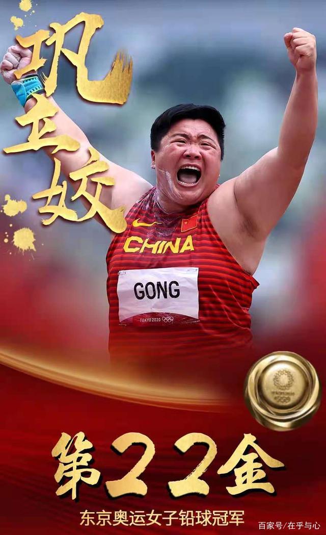 8月1日,在2020年东京奥运会田径女子铅球决赛中,巩立姣以第六投20米58创个人最佳成绩的表现夺冠,为我国夺得第22枚金牌,也是中国田径队东京奥运第一金。巩立姣夺金后,十分激动,泪洒赛场,身披五星红旗庆祝,激情怒吼:中国,牛!
