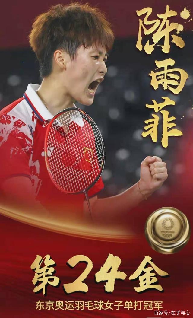 同日,东京奥运会羽毛球女子单打决赛进行。中国选手陈雨菲2-1战胜世界第一的戴资颖,夺得第24枚金牌。夺得奥运金牌后,陈雨菲朝着镜头反复指着胸前的国旗说道“中国女单做到了!我做到了!”时隔9年国羽女单再次站上奥运之巅,陈雨菲霸气宣告:“这个冠军证明了我们中国女单的重新崛起。”