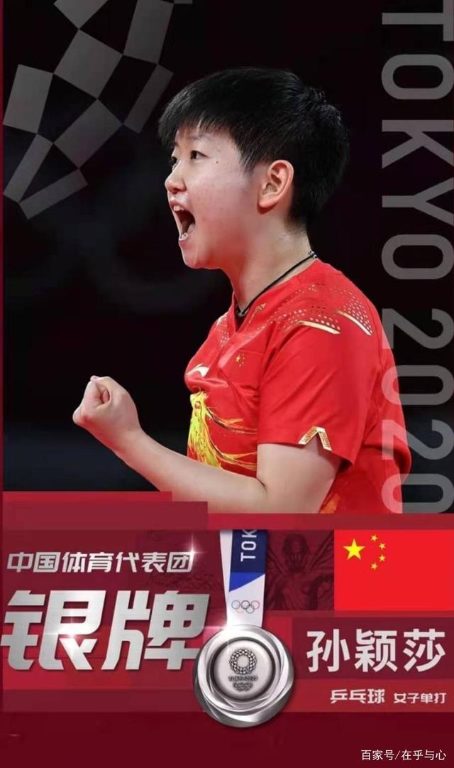 2021年7月29日,孙颖莎夺得2020年东京奥运会女单亚军,为我国夺得第7枚银牌。