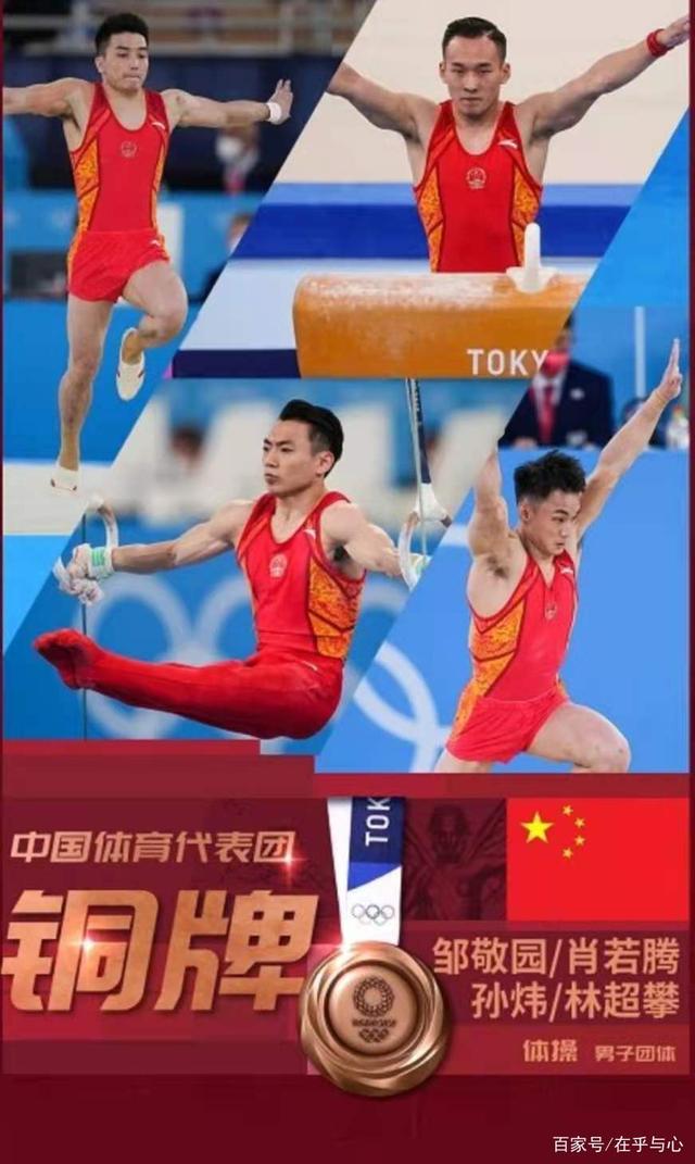7月26日,中国男子体操队选手肖若腾、邹敬园、孙炜、林超攀参加东京奥运体操男子团体决赛,为中国队夺得第7枚铜牌。