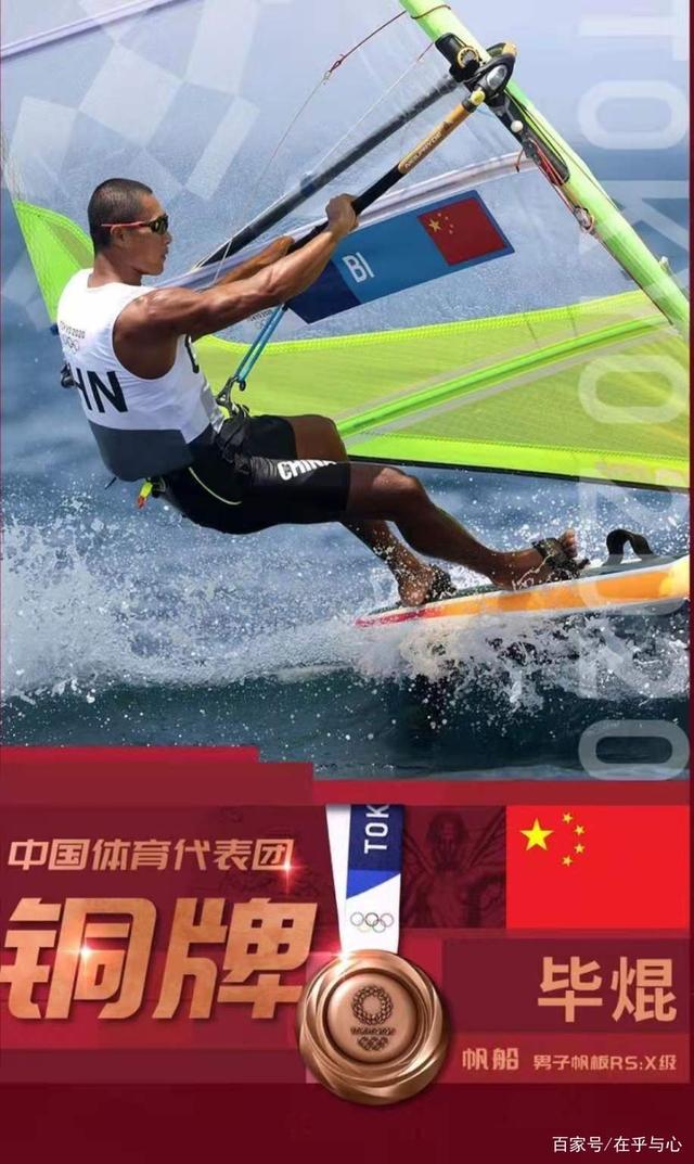 7月31日,在2020年东京奥运会帆船男子帆板RS:X级决赛中,毕焜获得铜牌。创造该项目中国男选手历史最好成绩。