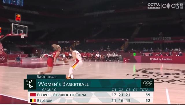 第三节比赛开场,比利时冲得很凶,38比40,前三分钟领先中国队,很快邵婷篮下打中,杨力维外线开花,43-42中国队拿回领先。
