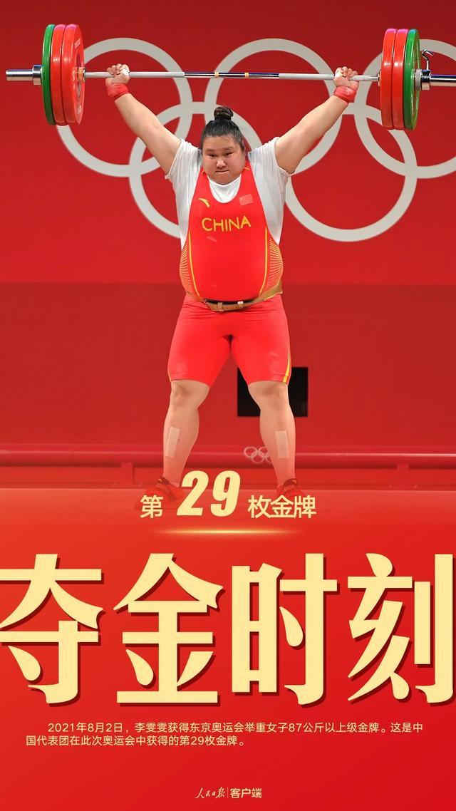 2021年8月2日,李雯雯以绝对优势获得东京奥运会举重女子87公斤以上级金牌。这是中国代表团在此次奥运会中获得的第29枚金牌。