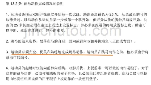 我们都不是职业运动员,规则可能没有他那么熟悉,但在跳马规则情况说明中明显写着“运动员必须安全、优美、熟练地完成跳马动作”。优美这个词不是主观判断?日本体育生不上课么?体操毕竟是美与力结合的项目,没有美感为什么不扣分?