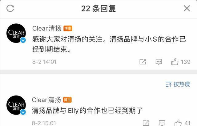 随后,各大代言商纷纷解除与她的代言合同。清扬洗发水、欣贺、大人等品牌先后宣布解约。