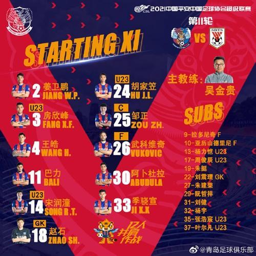 青岛队单外援武科维奇首发,邹正出战,亚历山德里尼、周俊辰替补。