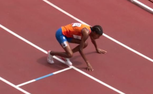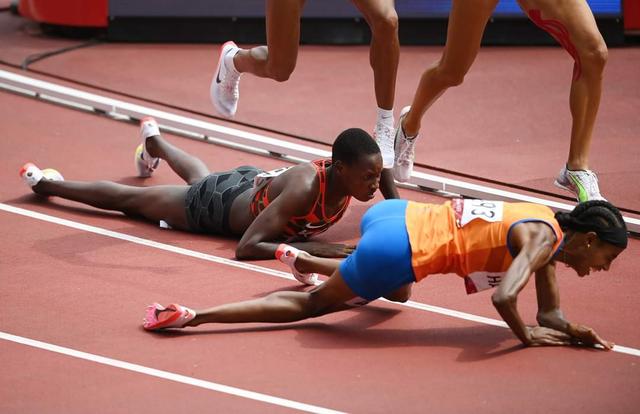 女子1500米预赛第2组,包括荷兰名将西凡-哈桑在内,一共15人参赛。跑到1100米左右,13名运动员开始发力冲刺。意外发生了:西凡-哈桑面前,一名运动员摔倒,并且把哈桑也带倒了!