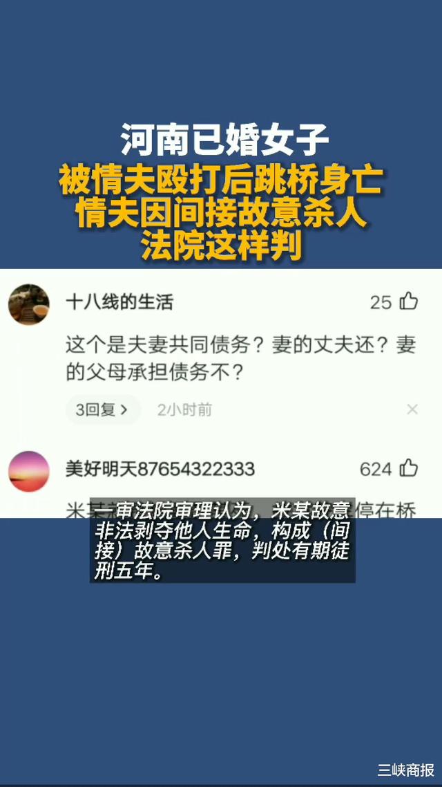 河南已婚女子被情夫殴打后跳桥身亡,情夫因间接故意杀人一审获刑5年