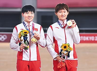 场地自行车赛场,钟天使/鲍珊菊在女子团体竞速赛半决赛刷新了世界纪录,并在决赛中力压德国队夺冠。这也是中国队继2016年里约奥运会后再度获得该项目金牌。