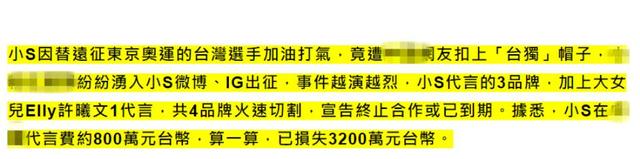 当舆论持续发酵后,先是小S妈妈出面,称拜托千万别封杀她女儿,小S认为每一个运动员都很优秀。