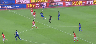 第41分钟,臧一锋投桃报李,一脚挑传直插广州队防线上的命门,谢鹏飞拍马赶到,将球推射入网。臧一锋这一传一射都精彩至极。