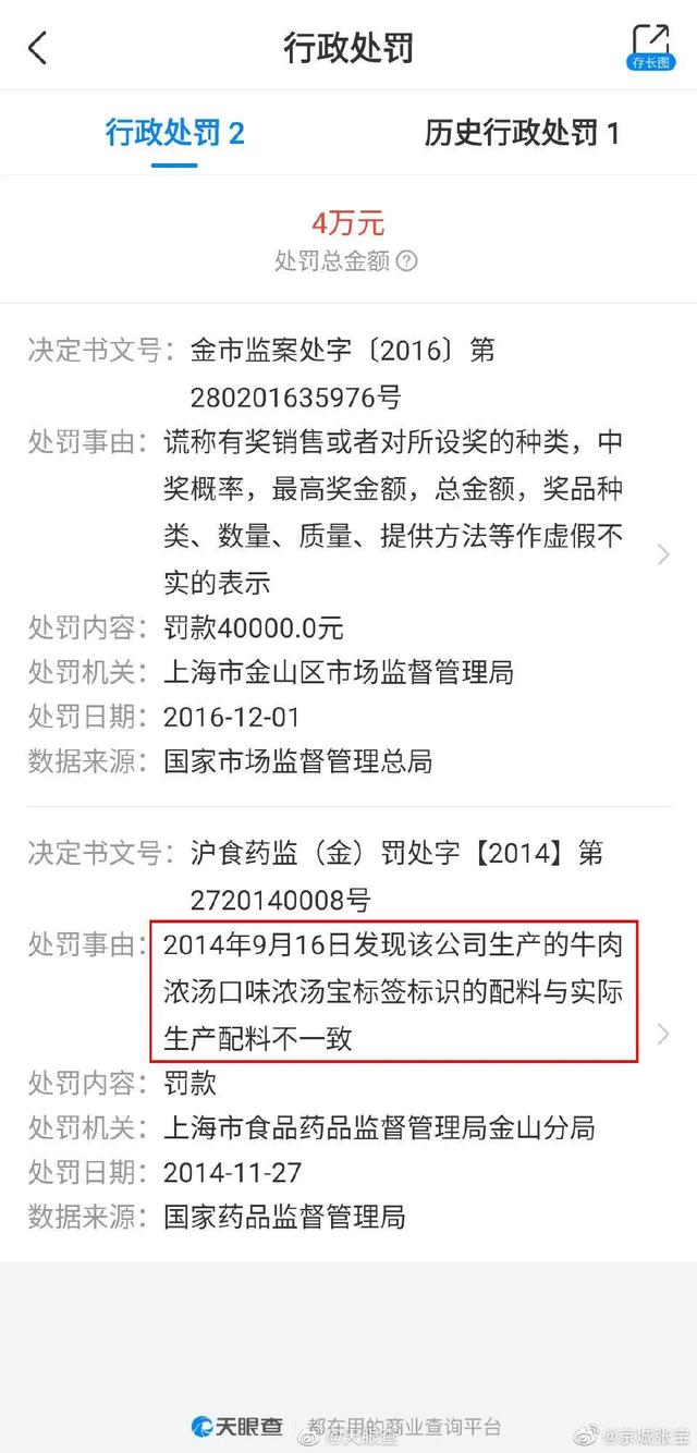 值得一提的是,联合利华食品(中国)有限公司也曾因“标签标识的配料与实际生产配料不一致”被行政处罚。