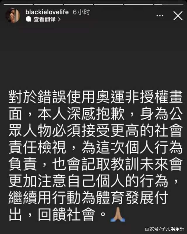陈建州表示“对于错误使用奥运非授权画面,本人深感抱歉,身为公众人物必须接受更高的社会责任,为这次个人行为负责,也会吸取教训。未来会更加注意自己个人的行为,继续用行动为体育发展付出,回馈社会”。