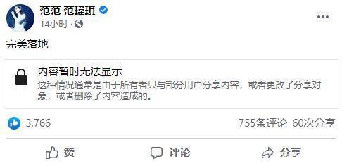 随后,范玮琪依旧没有对使用盗版看奥运这一行为道歉,又转发一条动态说“完美落地”,不过转发的这套内容只能让部分用户观看,也就是没有付费的网友,看不到范玮琪转发的那条内容。