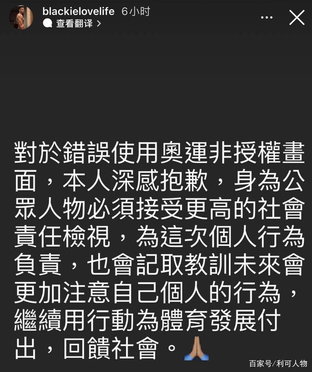 在事情败露之后,陈建州知道没有任何解释的余地了,所以选择出来乖乖地进行道歉,他在社交平台发布了道歉文,表示:对于错误使用奥运非授权画面,本人深感抱歉。