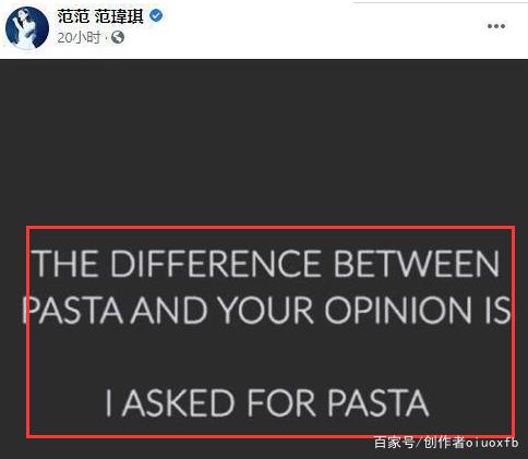 事情也在陈建州主动道歉的行为下开始降下热度。不过,作为老婆范玮琪并没有在这件事上有任何明确的表态,而是更新的一条新动态“意大利面和你的意见之间的区别就是我选择意大利面”,被网友解读为“不需要网友多管闲事,不接受你的意见”,反而更引起网友们的不满情绪,在二人的社交账号下面也就更多了些讽刺性话语。