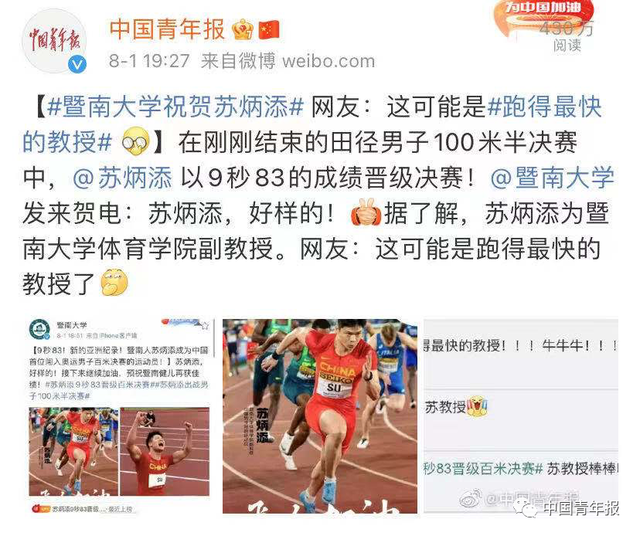 而这一次苏炳添的热度,被暨南大学“蹭”上了。