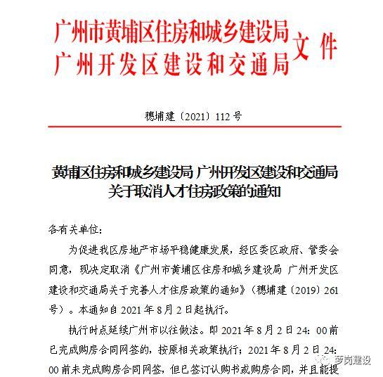 【摘要】 来源: ZAKER新闻8 月 2 日晚,黄埔住建局发布重磅消息。住建局宣布取消 2020 年颁布的《广州市黄埔区住房和城乡建设局广州开发区建