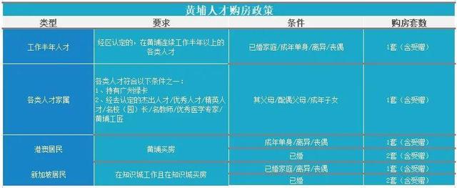 根据 2020 年的人才政策显示,经认定的在黄埔区连续工作半年以上的各类人才,可不受户籍限制,在区范围内购买 1 套商品住房。