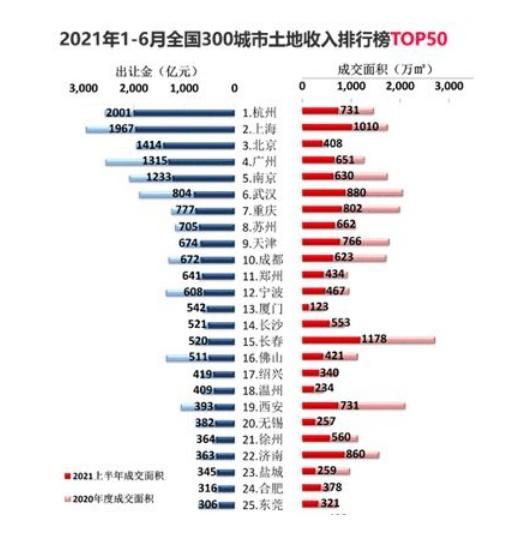下半年跟大湾区一起降温的,将是长三角的部分城市,比如上海、杭州、南京、宁波等。从下图可以看出,在卖地方面,长三角上半年是最猛的。