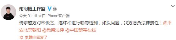 看来谢明皓这次是想要与林俊杰和潘玮柏撕到底了;