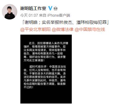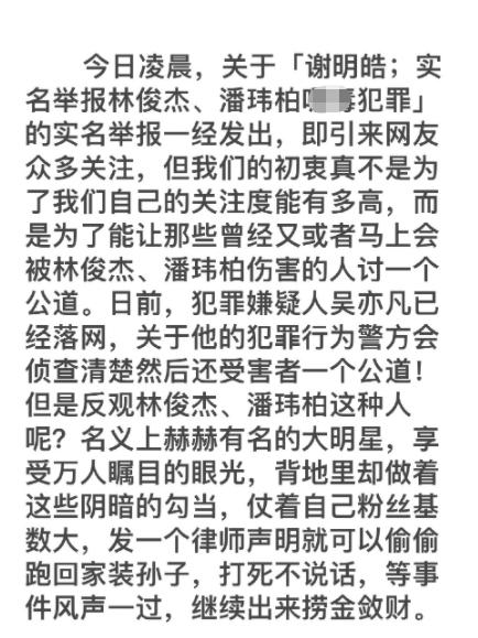 艺人谢明皓实名制举报潘玮柏、林俊杰