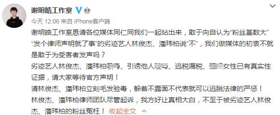 艺人谢明皓通过工作室途径就已经实名制举报了两人。