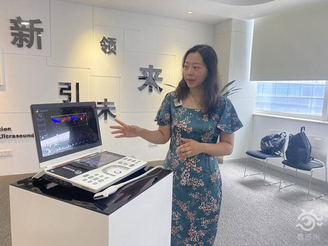 看苏州记者发现,与以往的彩超机不同的是,这台便携式彩超机的大小仅相当于一台笔记本电脑,重量3.5千克,是普通彩超机重量的三十五分之一,充满电后可以使用2个小时。