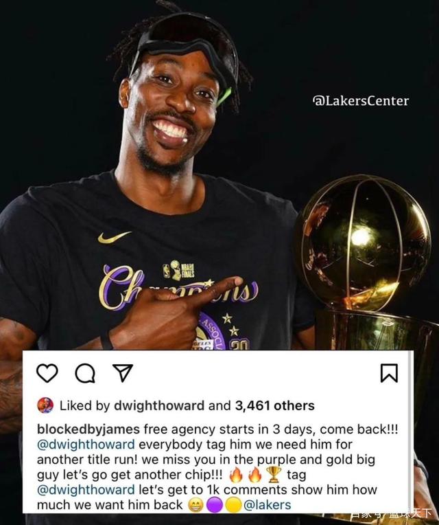 下一位,你期待谁的加盟?对了,今天有球迷发文希望霍华德重回湖人,霍华德本人对此进行了点赞。