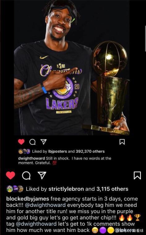 近日,一个在美国小有名气的勒布朗粉丝博主在INS上发帖号召球迷们一起招募霍华德回归湖人,这个形式和当年贴吧的盖楼非常相似。值得一提的是,霍华德本人随后点赞了这条帖子,这个博主随后还专门制作了视频进行庆祝。虽然事件的起点非常低,但对于湖人而言,这是个不错的信号,他们现在需要霍华德,这样一名对湖人感情深厚的球员值得招募。