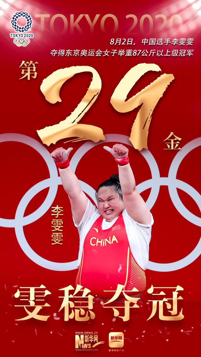 昨天中国代表团最后一枚金牌由“00后”举重运动员李雯雯摘得,在女子87公斤以上级决赛中,李雯雯以抓举140公斤、挺举180公斤总成绩320公斤刷新三项奥运会纪录的成绩夺冠为中国代表团拿下第29金。至此,本届奥运会中国队所有举重项目也都结束比赛争夺,中国代表团在本届奥运会上举重项目取得了7金1银的完美战绩。