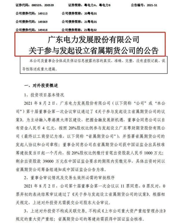 8月2日,粤电力A的一纸公告,透露了广东省设立省级期货公司的重要情况和最新进展。