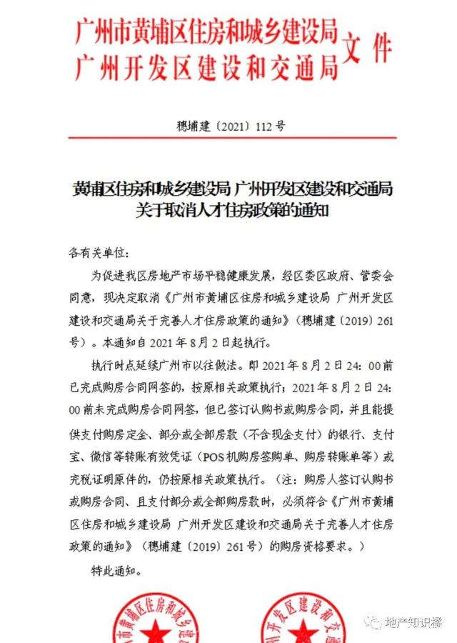 就在刚刚,广州市黄埔区住建部门正式宣布:取消人才住房政策。