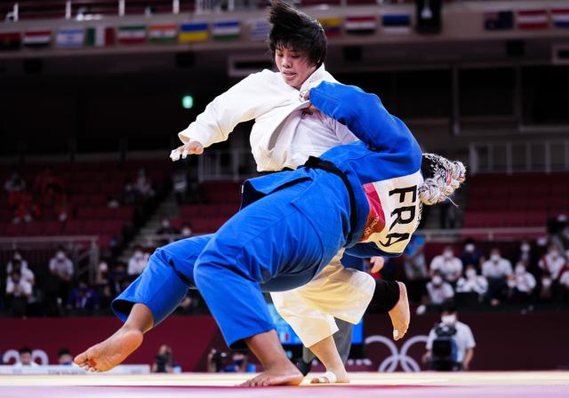 新华社照片,东京,2021年7月31日 (东京奥运会)(6)柔道——法国队获得混合团体赛冠军 7月31日,法国队选手迪科(下)与日本队选手素根辉在女子70公斤以上级比赛中角逐。 当日,在东京奥运会柔道混合团体赛中,法国队战胜日本队,获得冠军。 新华社记者 刘大伟 摄