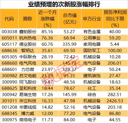 从行业来看,继续保持涨势的次新股中机械设备行业个股最多,共有16只,其中盛剑环境近一个月累计上涨111.24%居于首位。电气设备、电子行业紧随其后,分别有13、12只个股上涨。业绩上来看,目前共有28只次新股发布了上半年业绩预告或中报,26家净利润预增,华立科技、信安世纪、易瑞生物等8股预计净利润增幅在100%以上。
