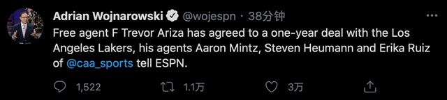 据名记Woj报道,阿里扎和湖人达成了一年签约协议。这名曾在09年帮助湖人夺得队史第15座总冠军奖杯的功勋老臣正式回归湖人阵中。现年36岁的阿里扎在上赛季为热火出战了30场比赛,其中27场首发,场均可以得到9.4分4.8篮板,是一名出色的3D球员。在过去的三年里,阿里扎成为了联盟著名的流浪汉,辗转于太阳、奇才、国王、开拓者、雷霆和热火之中。