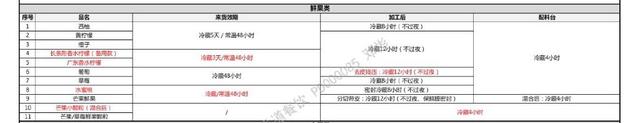 奈雪的茶门店新鲜水果存放效期标准(内部资料) 来源:奈雪的茶官方微博