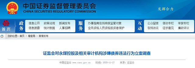 证监会随即于去年11月27日发布消息称,决定依法对永煤控股及希格玛会计师事务所立案调查。随着监管出手和积极表态,信用债市场风波平息。