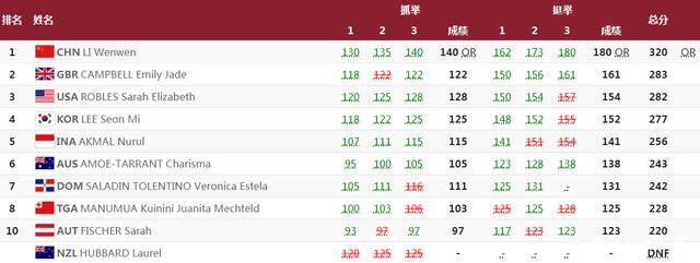 最终,三把抓举,哈伯德全部失败了,120公斤、125公斤、125公斤,哈伯德没能完成,没有成绩,甚至直接无缘挺举比赛。也就是说,哈伯德在本届奥运会只举了三把,她的比赛就结束了。此外,李雯雯的夺金成绩是抓举140公斤,挺举180公斤,总成绩320公斤。