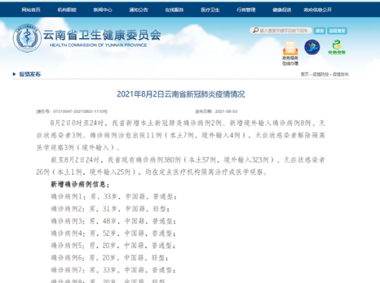 据新华社,2021年8月2日云南省新冠肺炎疫情情况如下:
