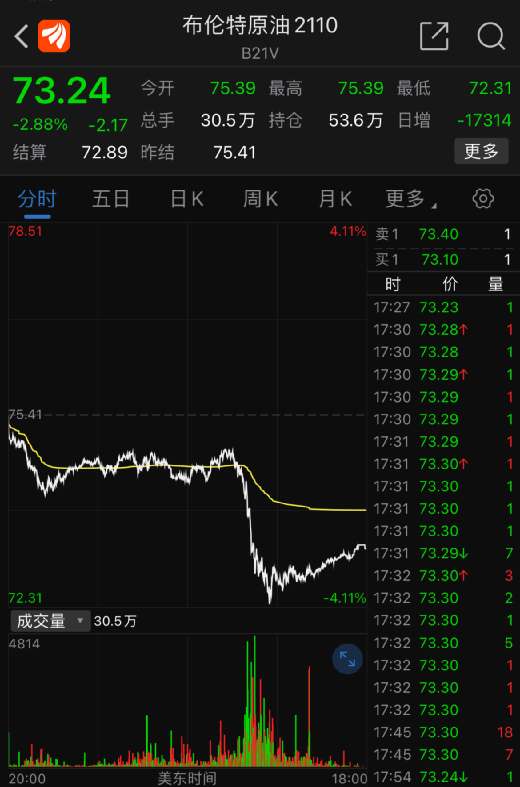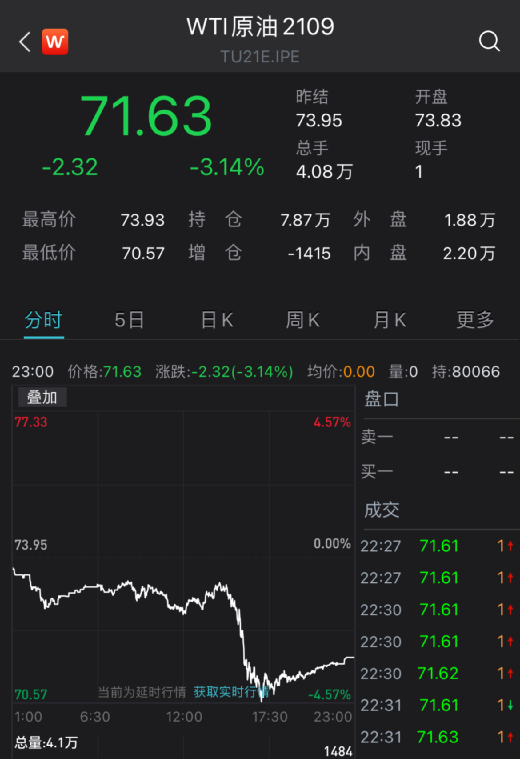 美东时间8月2日盘中,WTI原油期货及布伦特原油期货均一度跌超4%。