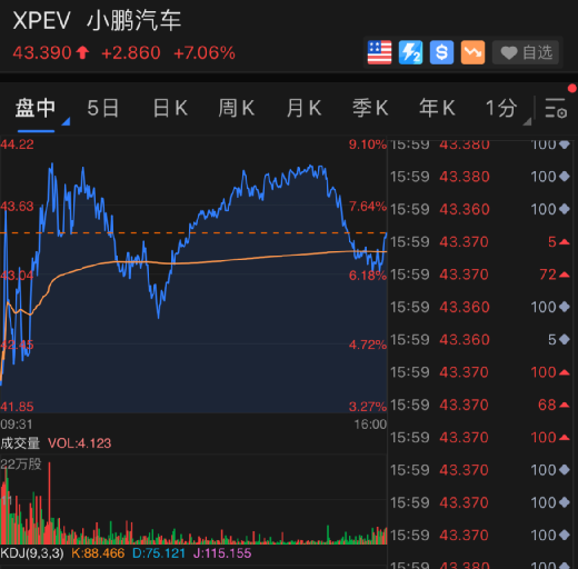 小鹏汽车在美大涨7%,市值上涨22.99亿美元,约合149亿人民币。