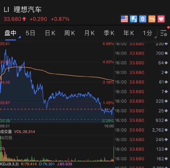 理想汽车盘中一度涨近6%,收盘涨幅收窄至0.87%,市值上涨2.63亿美元,约合17亿人民币。
